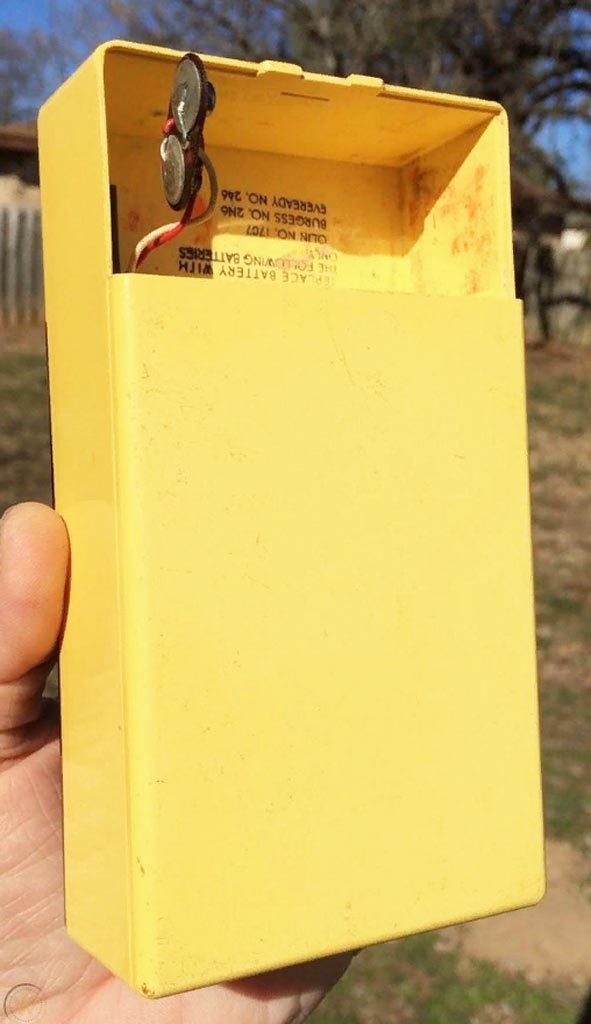 от батареи 9 вольт. Громкоговоритель диаметром 7,2 см. Габариты модели