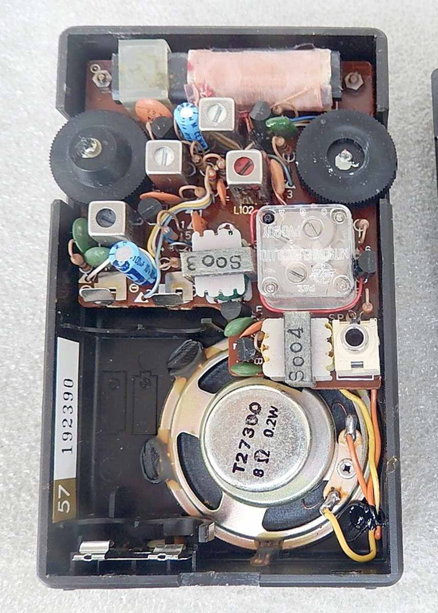 (СВ) супергетеродин на 6-ти транзисторах. Чувствительность - 3 мВ/м. Громкоговоритель