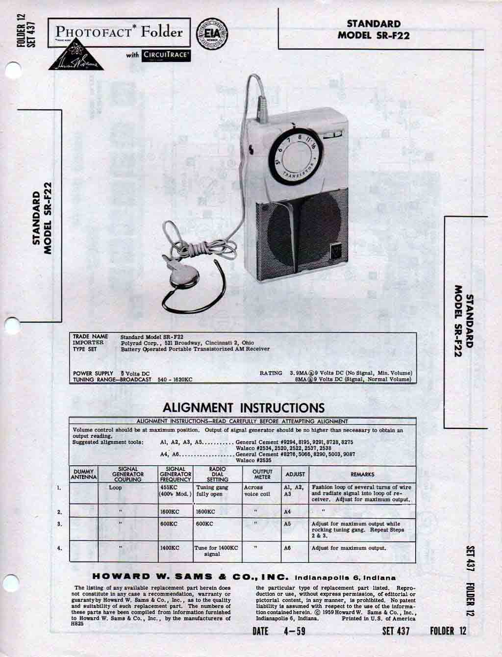 SR-F22" выпускался с 1957 года Японской компанией "Standard Radio Co. LTD".