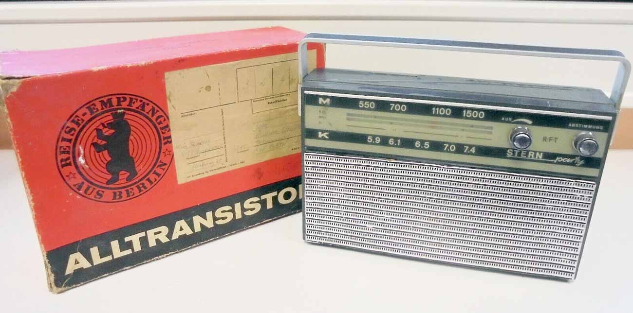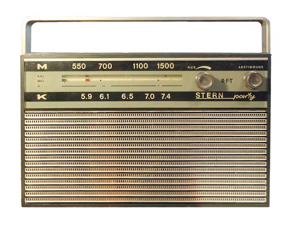 Портативный радиоприёмник "Stern Party 1100" (R120) выпускался с 1967 года фирмой "Stern-Radio", ГДР. Супергетеродин на 6-ти транзисторах и 2-х диодах. Диапазоны MW - 520...1605 кГц и KW - 5, 82...7,55 МГц. ПЧ 455 кГц. Питание 9 вольт, 2х4,5 вольта (3 R12). Максимальна выходная мощность 450 мВт. Диапазон воспроизводимых частот звука 120...4000 Гц. Габариты приёмника 252х60х70 мм. Масса 1,7 кг с батареями.