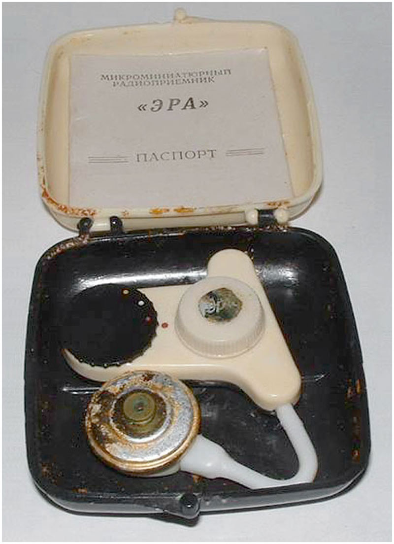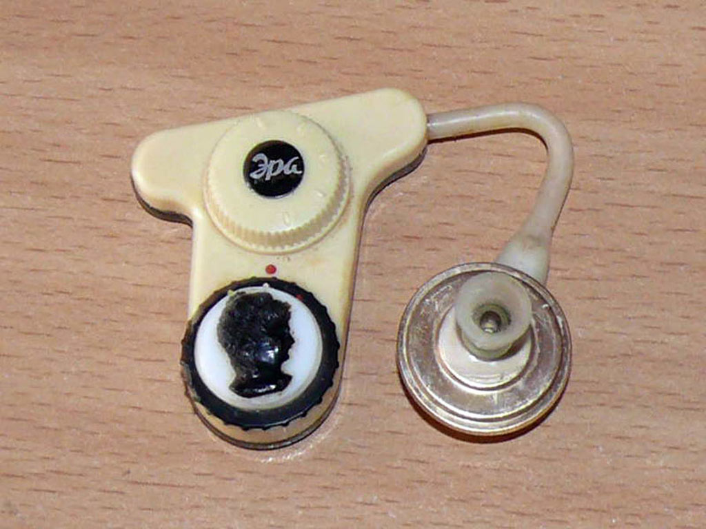 оформлен в виде серьги, а приёмник ''Маяк-1'' в виде броши. Радиоприёмники