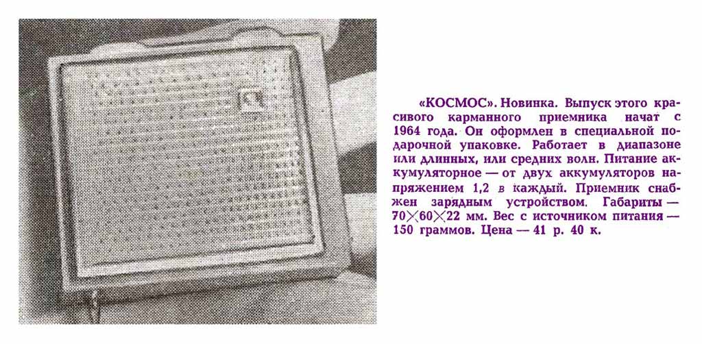 серийный умещающийся на ладони миниатюрный радиоприёмник ''Космос''. Приёмники