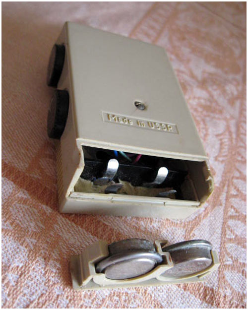 выходная мощность 30 мВт. Питание - два аккумулятора Д-0,1. Потребляемый