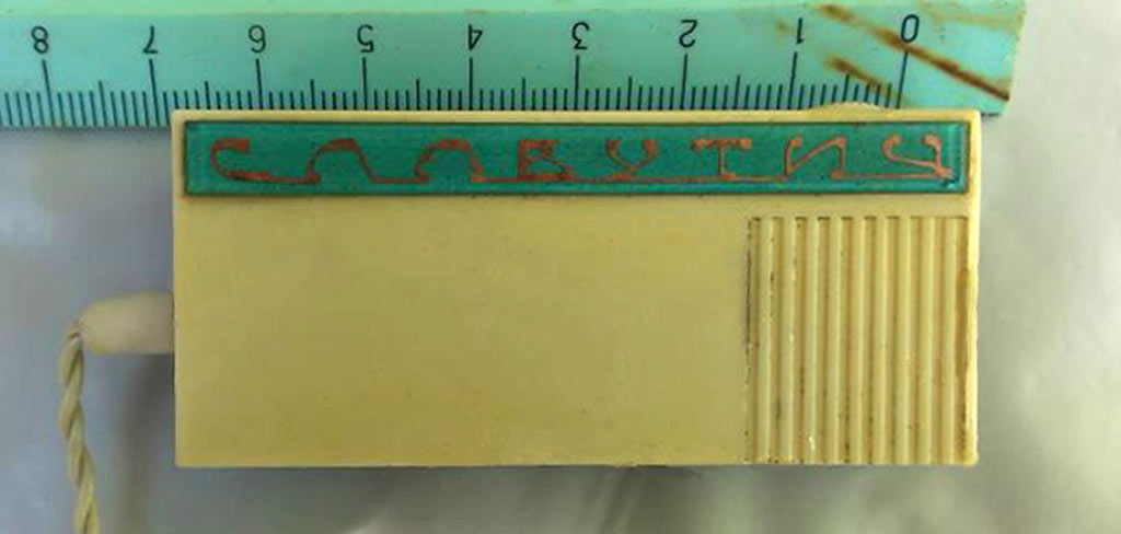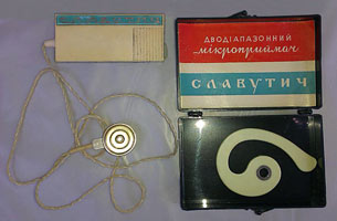 Малогабаритный сувенирный радиоприёмник "Славутич" выпускался предположительно с 1990 года "Киевским радиозаводом".