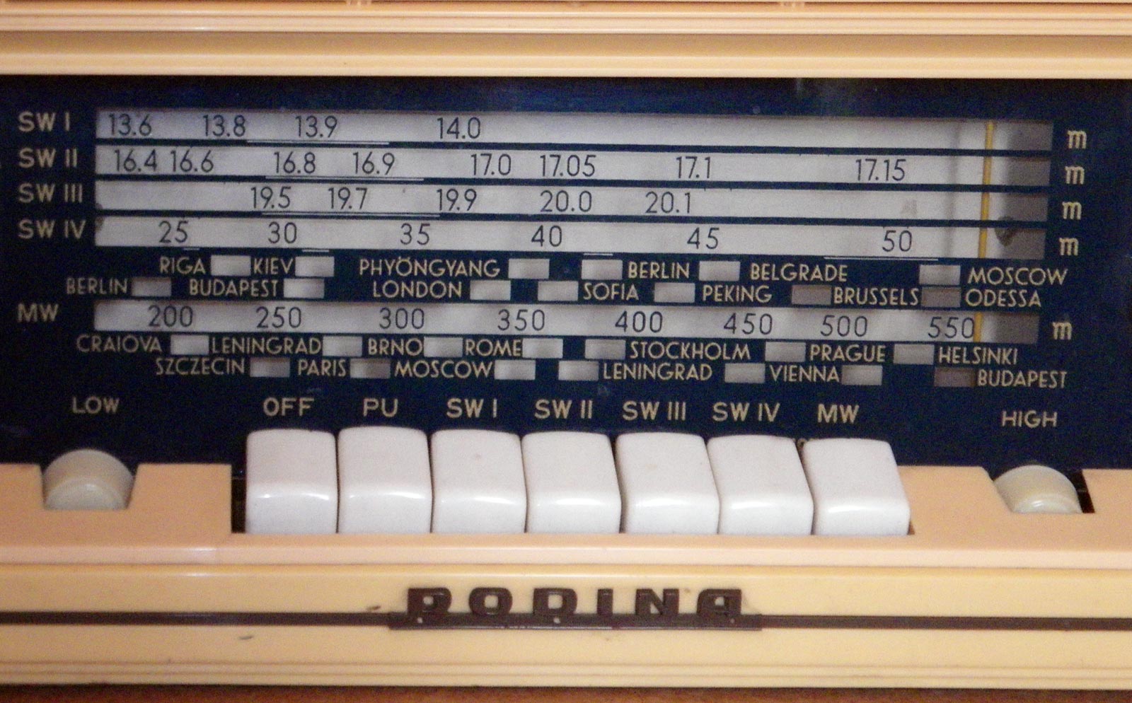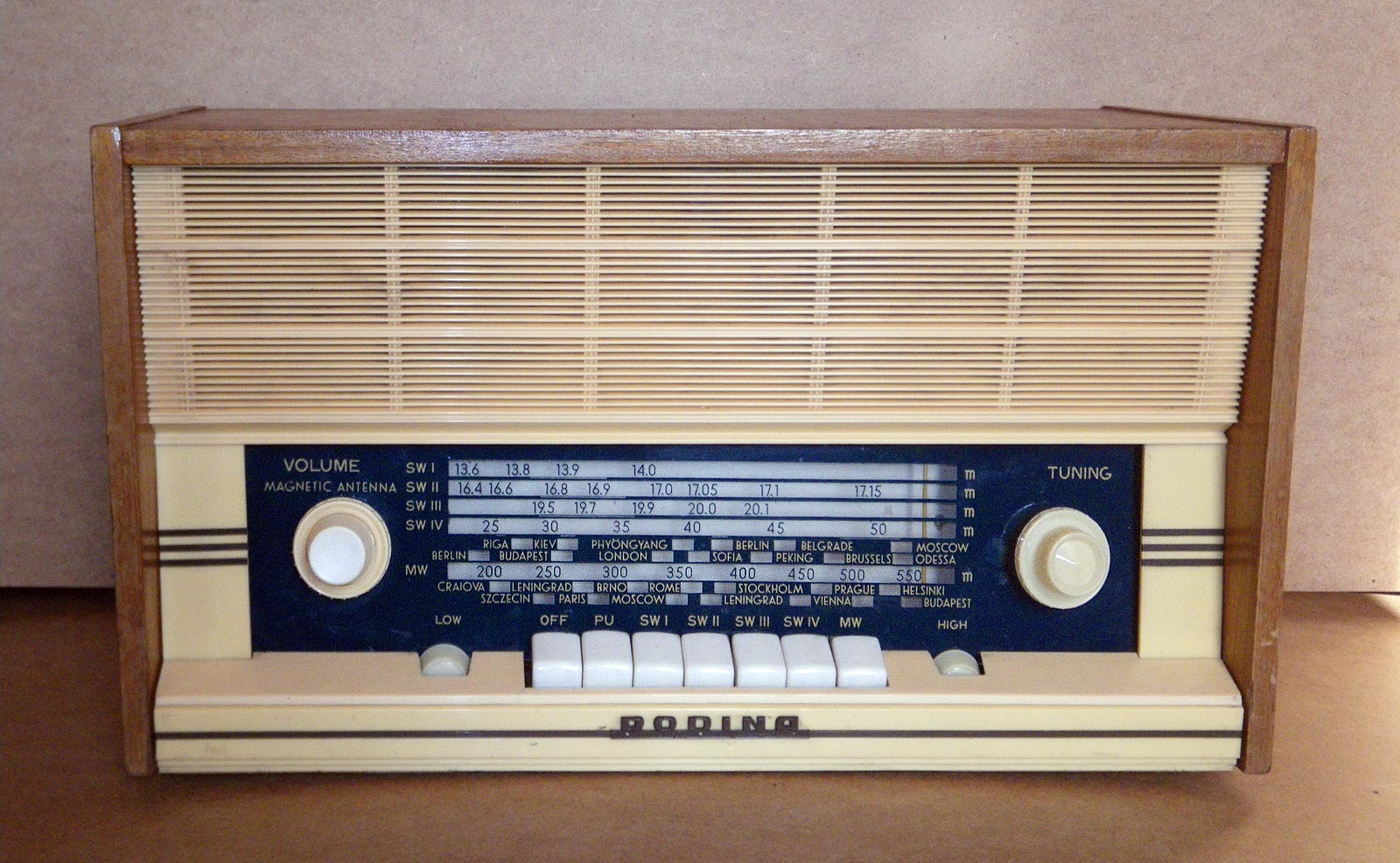 не имел диапазона ДВ, а КВ диапазонов четыре. Небольшие отличия замечены