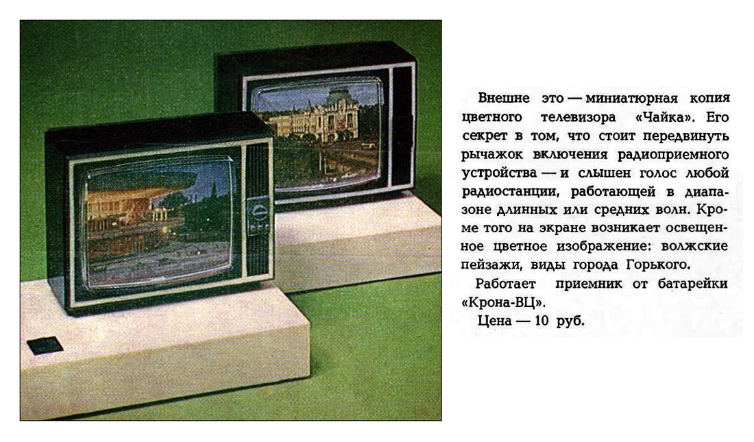 Сувенирный радиоприёмник "Чайка" предположительно с 1982 года выпускал Горьковский телевизионный завод имени Ленина. Сувенирный радиоприёмник описан в каталоге "Товары народного потребления" за 1984 год.