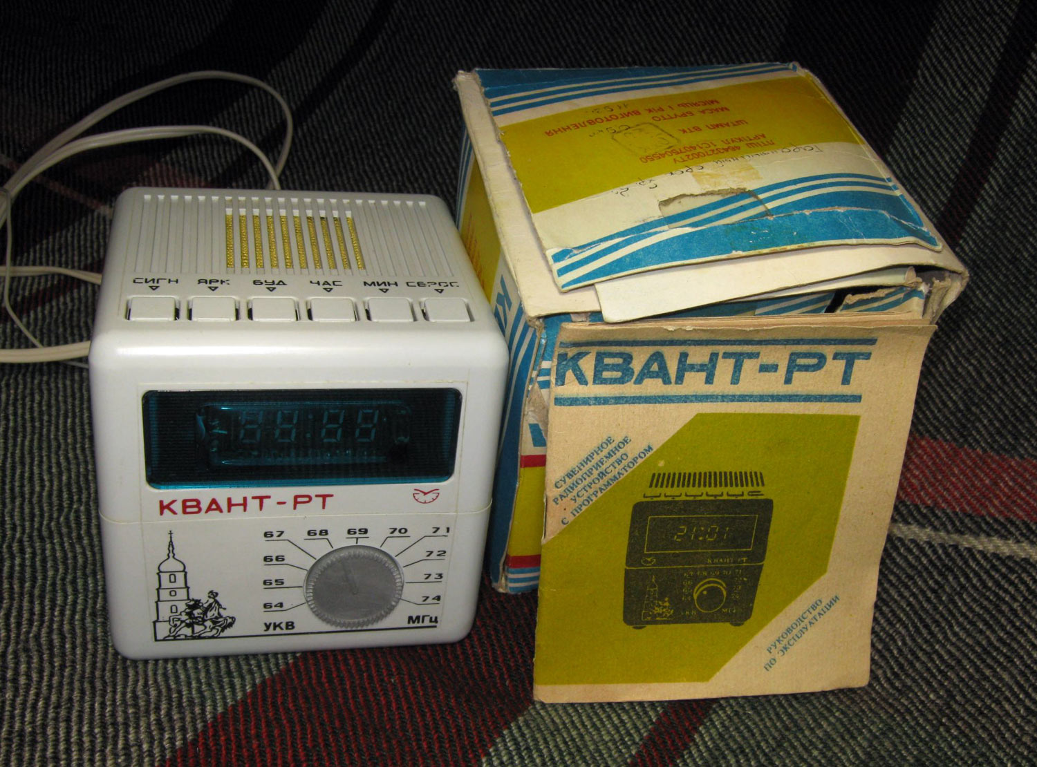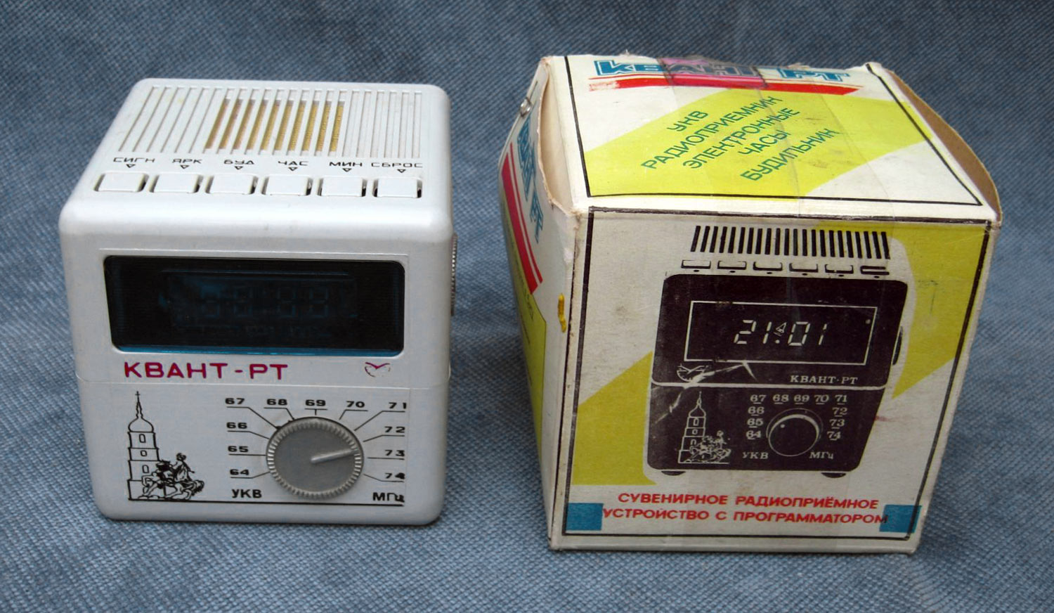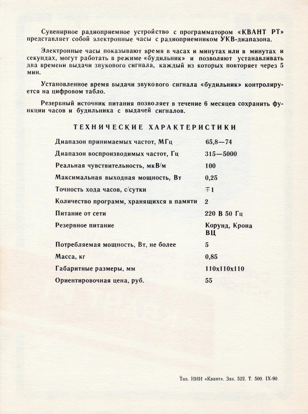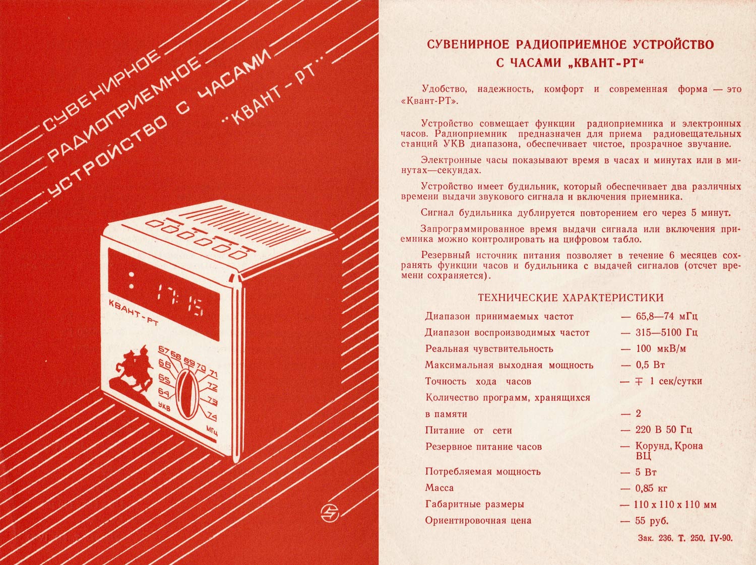 Сувенирное радиоприёмное устройство с программатором "Квант РТ" выпускался с 1990 года Киевским заводом "Буревестник". Информацию см. ниже.