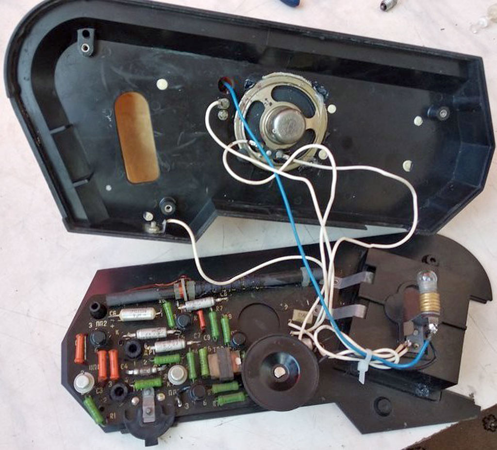 был 6-транзисторный однодиапазонный (ДВ) вариант, с белым катером на фасаде,