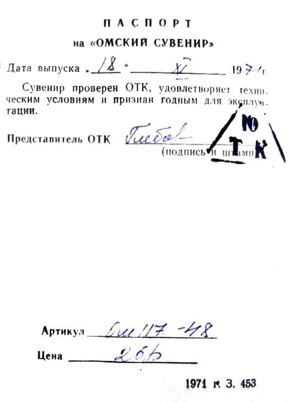 приборостроительный завод имени Козицкого. "Омский сувенир" олицетворяет