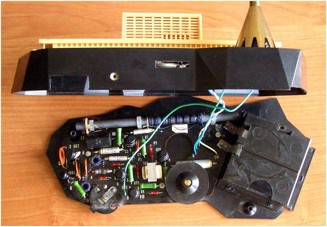 В сувенире установлен радиоприёмник прямого усиления, собранный на шести