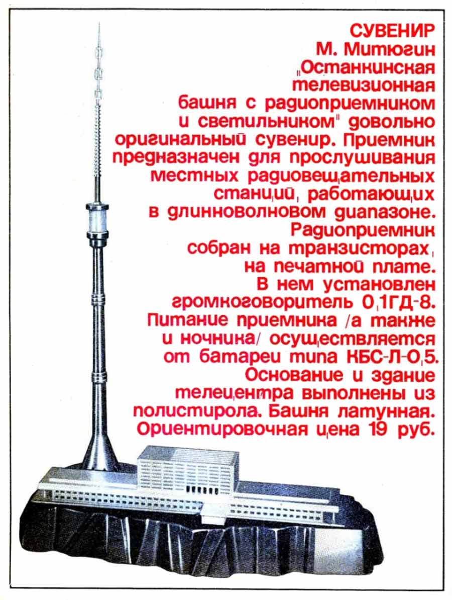 телецентр" с 1967 года выпускал Московский радиотехнический завод. Сувенир