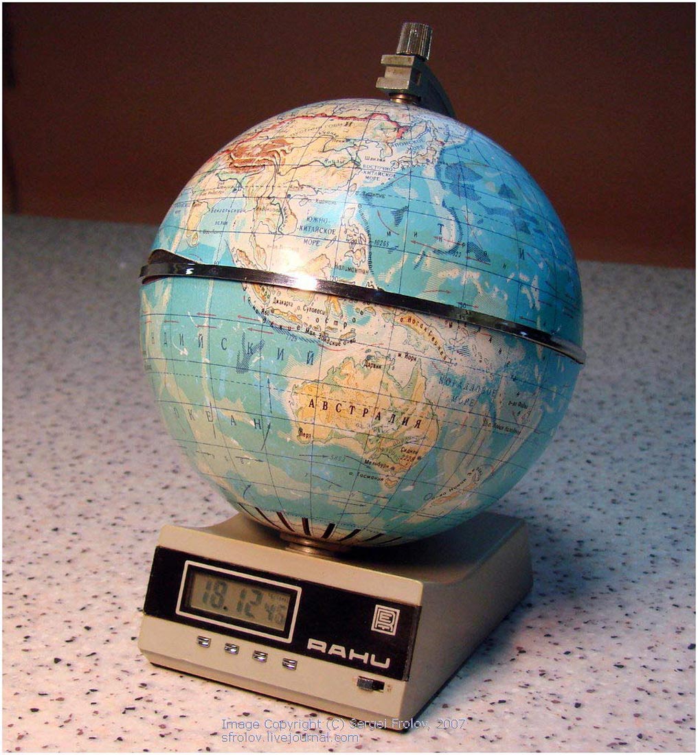 глобуса, а настройка на радиовещательную станцию происходит поворотом глобуса