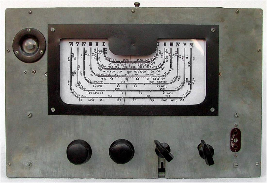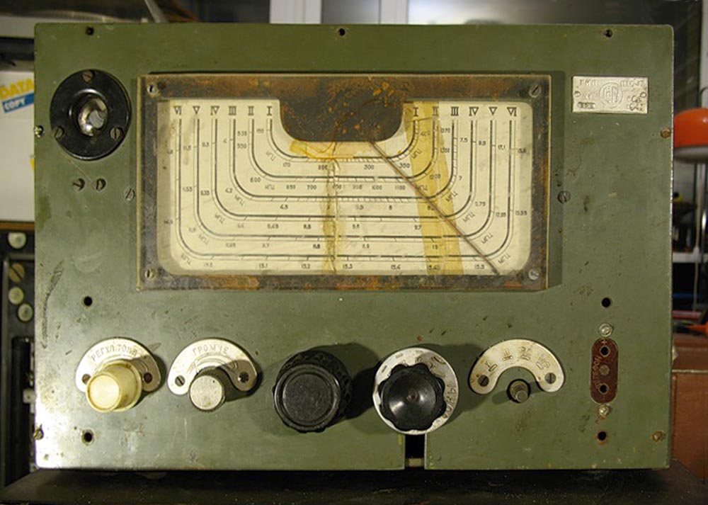 панели приёмника расположена шкала отградуированная в метрах, килогерцах