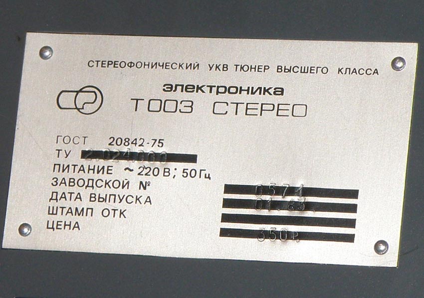 транзисторный тюнер "Электроника Т-003-стерео" с 1983 года выпускал Горьковский