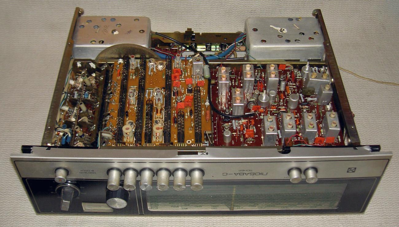 к усилителю. Тюнер помещен в корпус, отделанный шпоном ценных пород древесины.