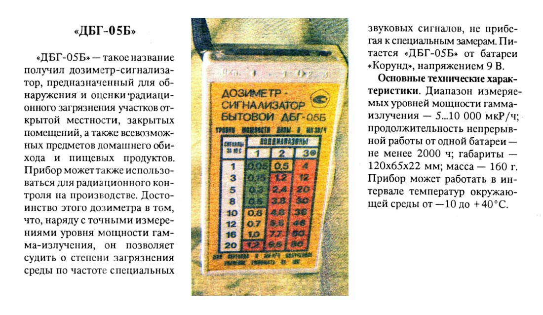 бытовой "ДБГ- 05Б" выпускался с 1993 года. Дозиметр служит для обнаружения