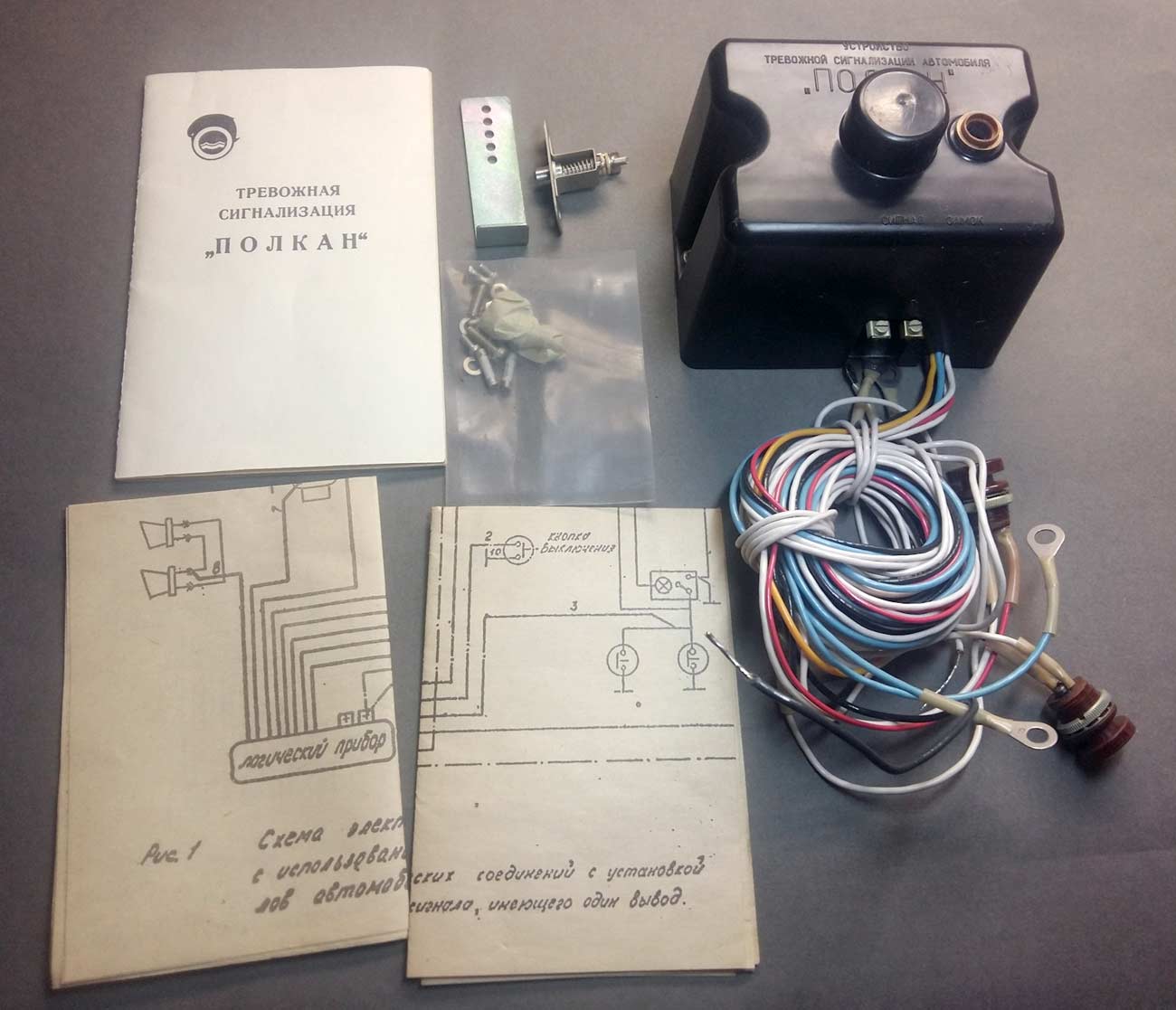 Тревожная сигнализация "Полкан" выпускалась возможно с 1977 года. Служит для установки в отечественные автомобили. Громко сигнализирует при попытке открытия дверей, капота или же угона автомобиля.