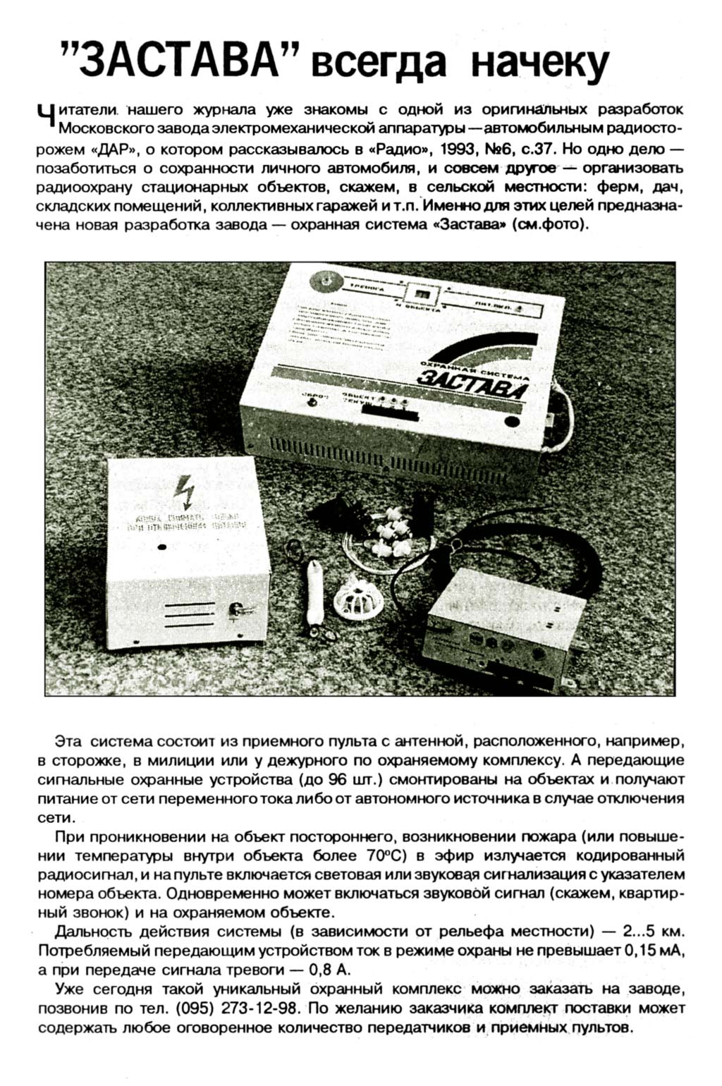 Автомобильная охранная система "Застава" разработана в 1994 году Московским заводом электромеханической аппаратуры. Подробнее смотрите ниже.