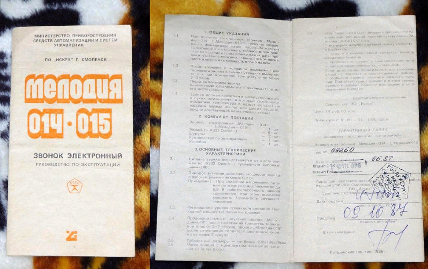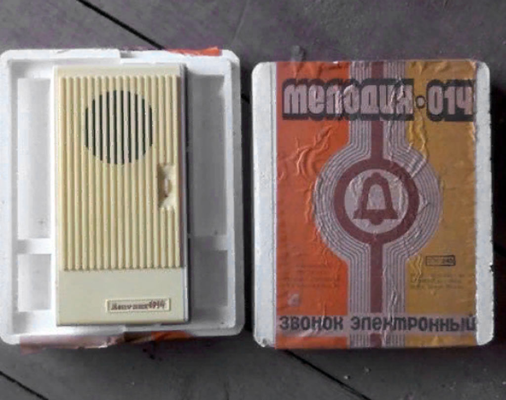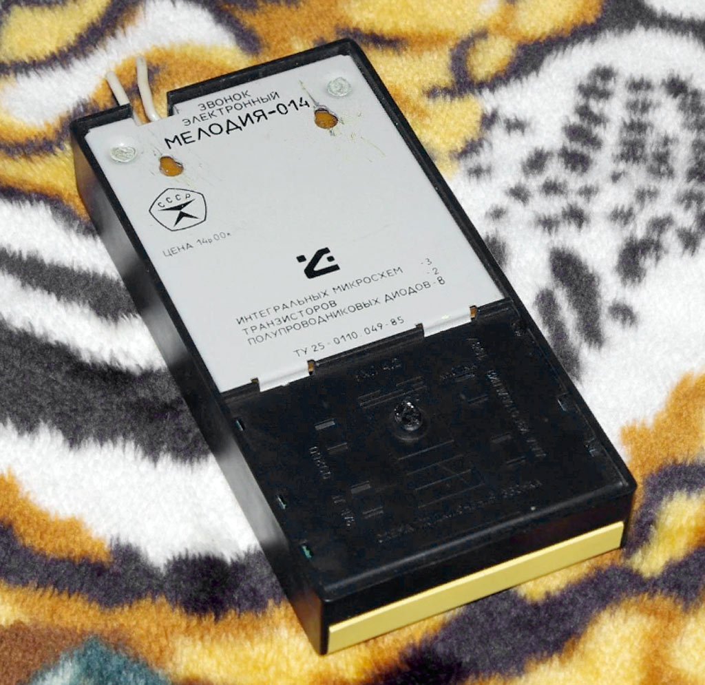 Звонок электронный "Мелодия-014" (Мелодия-015) с 1985 года выпускало Смоленское ПО "Искра". Отличие звонков в питании от батарей или сети.