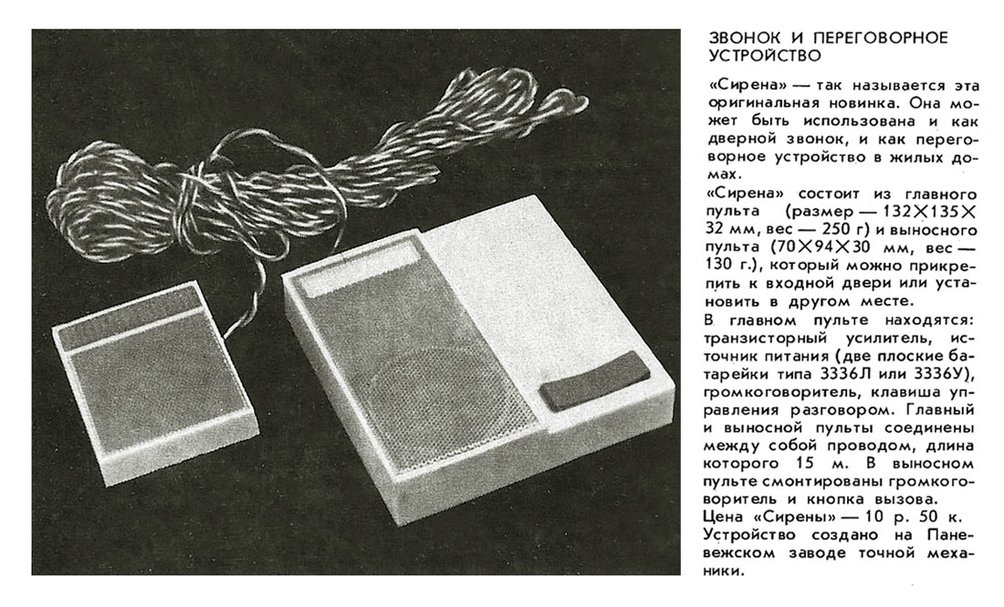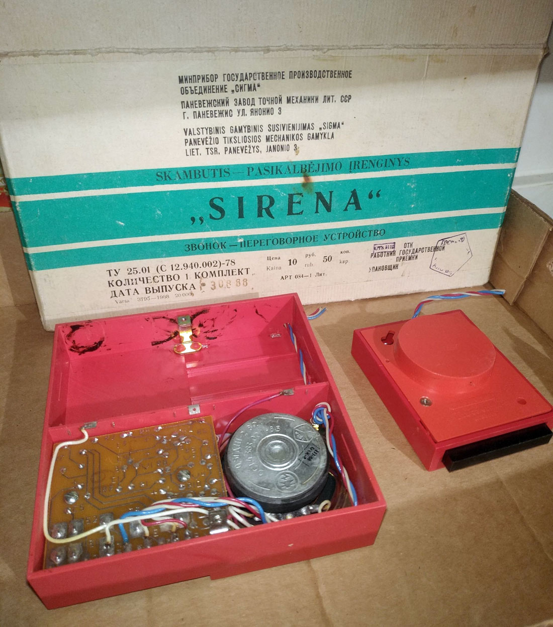 Звонок и переговорное устройство "Сирена" выпускали предположительно с 1979 года на Паневежском заводе точной механики. Информация ниже.