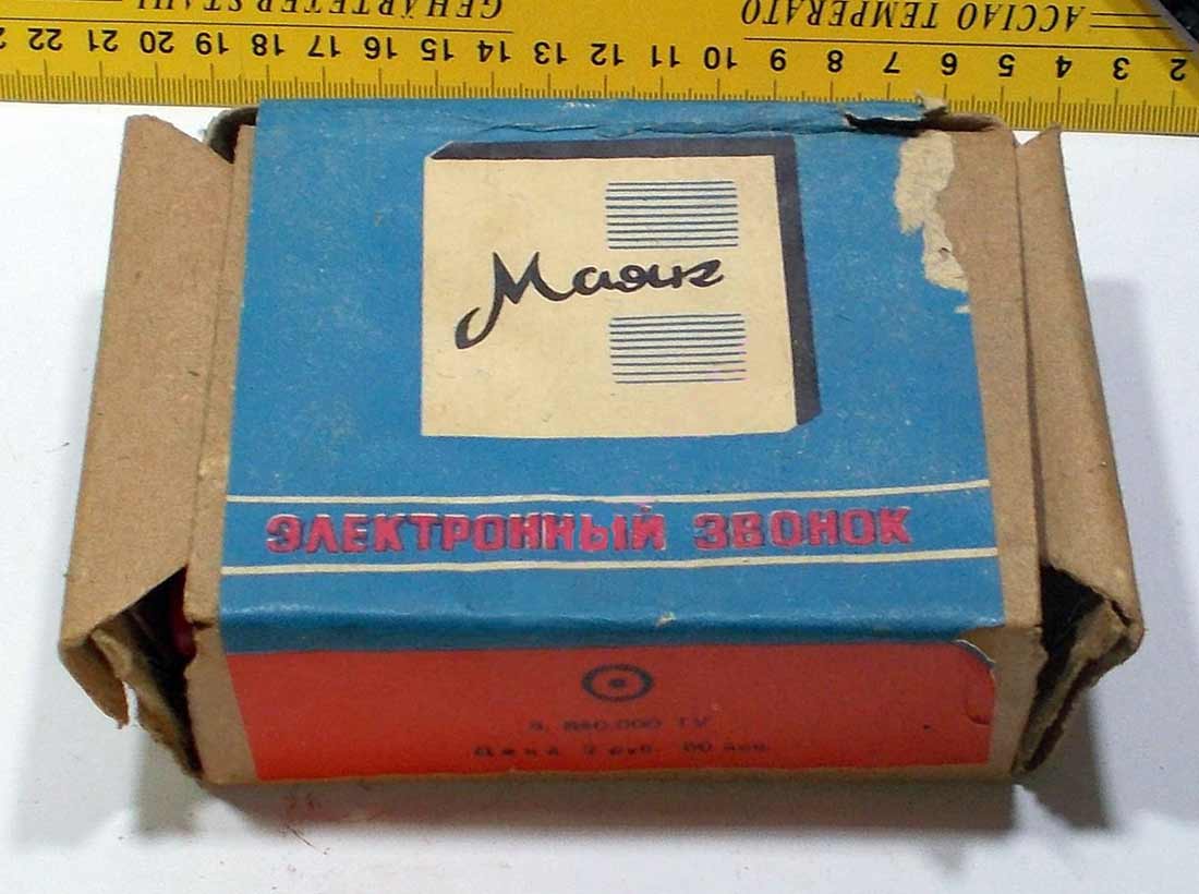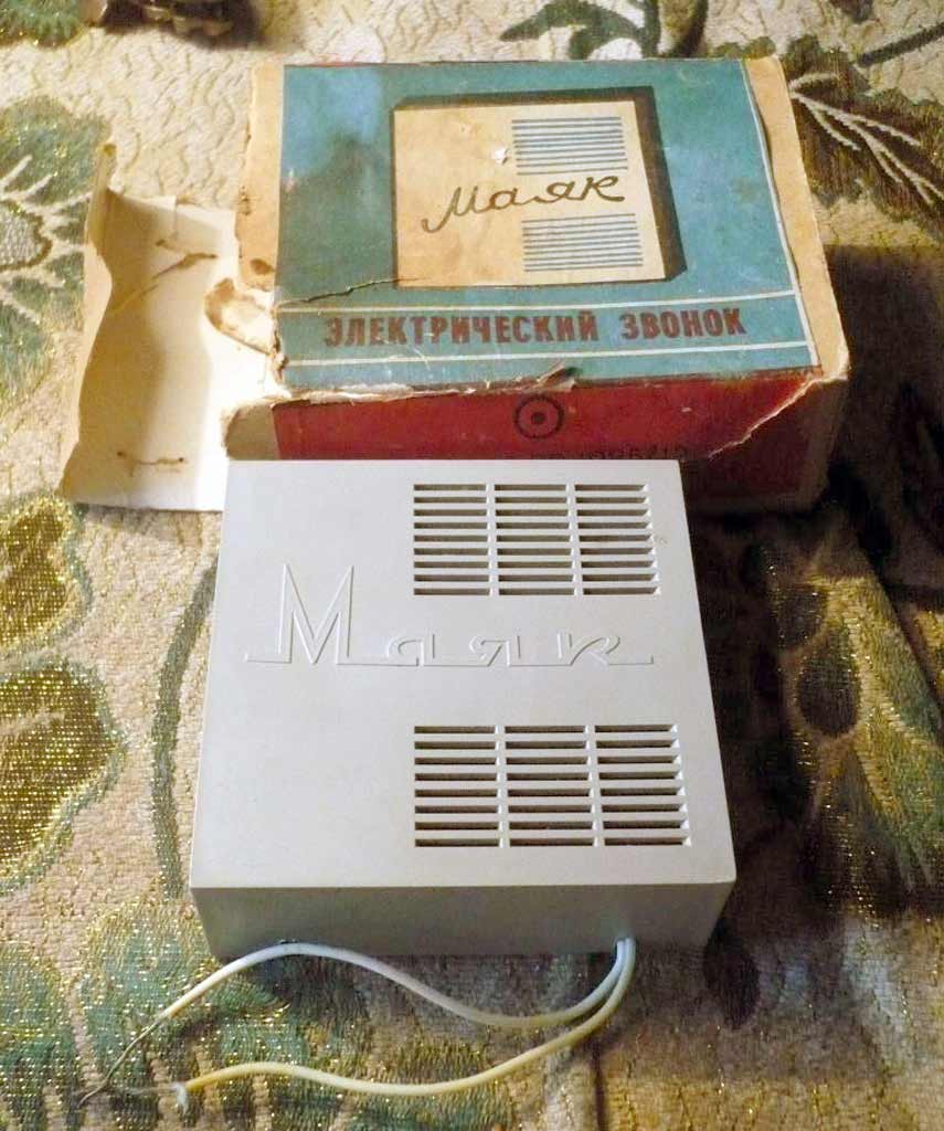 Электрический звонок "Маяк" выпускался предположительно с 1975 года в городе Тернополь. Украина. Такой же корпус использовался ещё для некоторых устройств и конструктора - сигнализатора влажности.