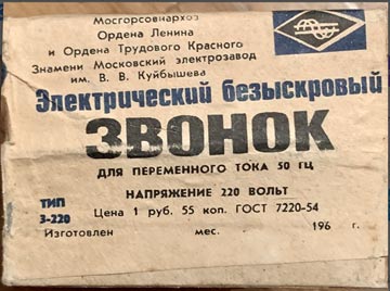 безыскровой звонок "З-220" выпускался предположительно с 1961 года Ордена