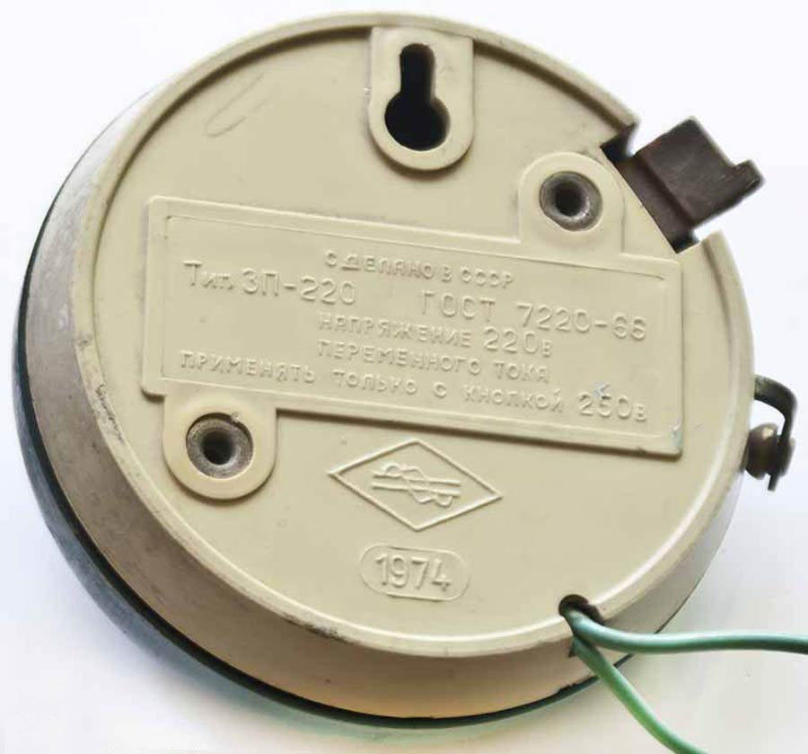 Электрический звонок "ЗП-220" выпускался с 1970 года Московским электрозаводом имени Куйбышева. Устройство вибрационного типа, с ударным молоточком.