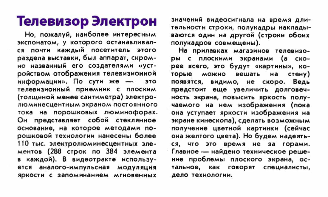 плоским экраном "Электрон" демонстрировался на выставке "Связь-86" в разделе