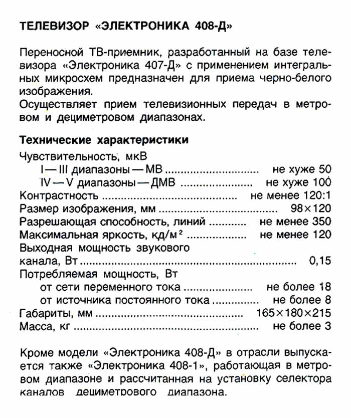 по эксплуатации телевизора "Электроника-408Д" без электрической и монтажной
