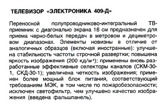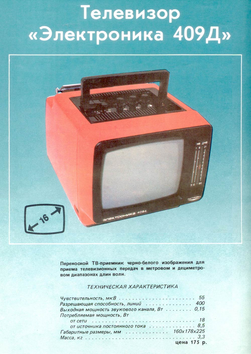 "Катион". ''Электроника-409/Д'' - малогабаритный полупроводниковый телевизор