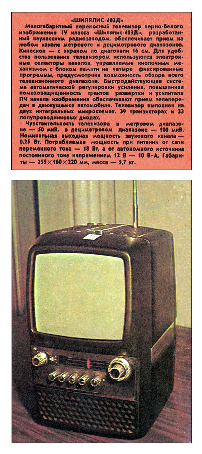 "Шилялис-403Д" с 1977 года выпускал Каунасский радиозавод. Малогабаритный,