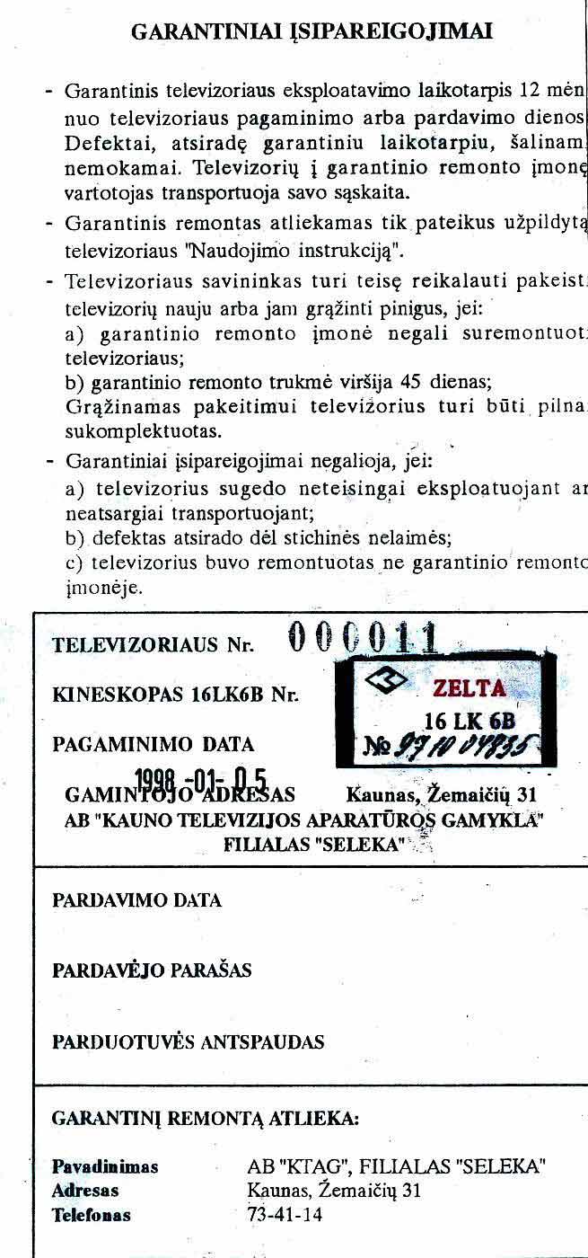 "SILELIS-406R", на экспорт "LUKON-406R". Цена телевизора 690.00 Lt.