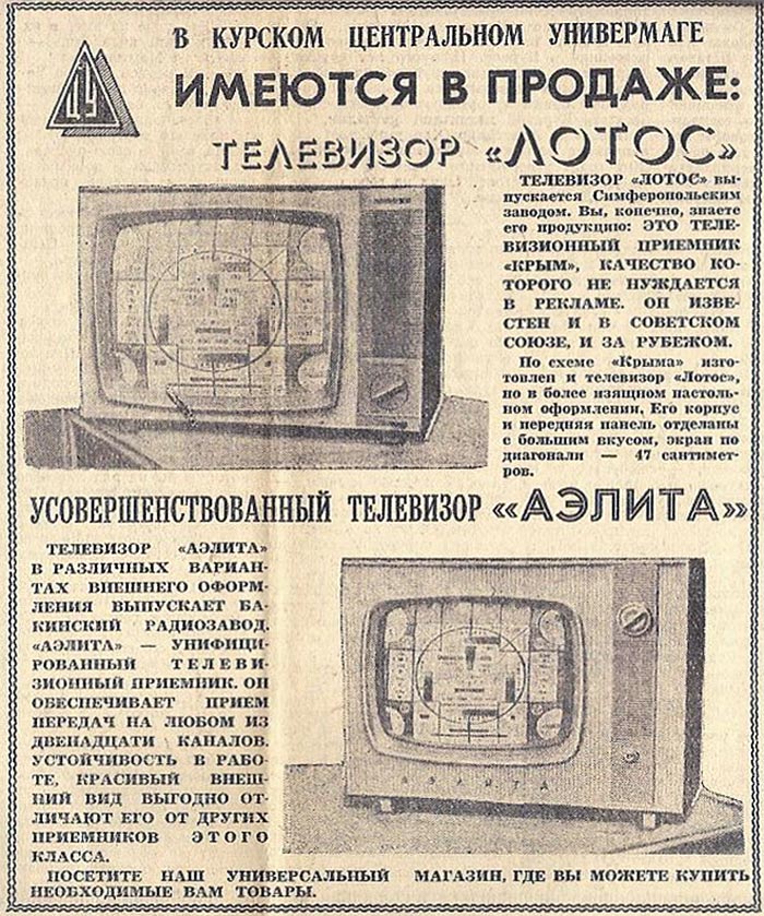 изображения "Аэлита" с 1964 года выпускал Бакинский радиозавод. Унифицированный