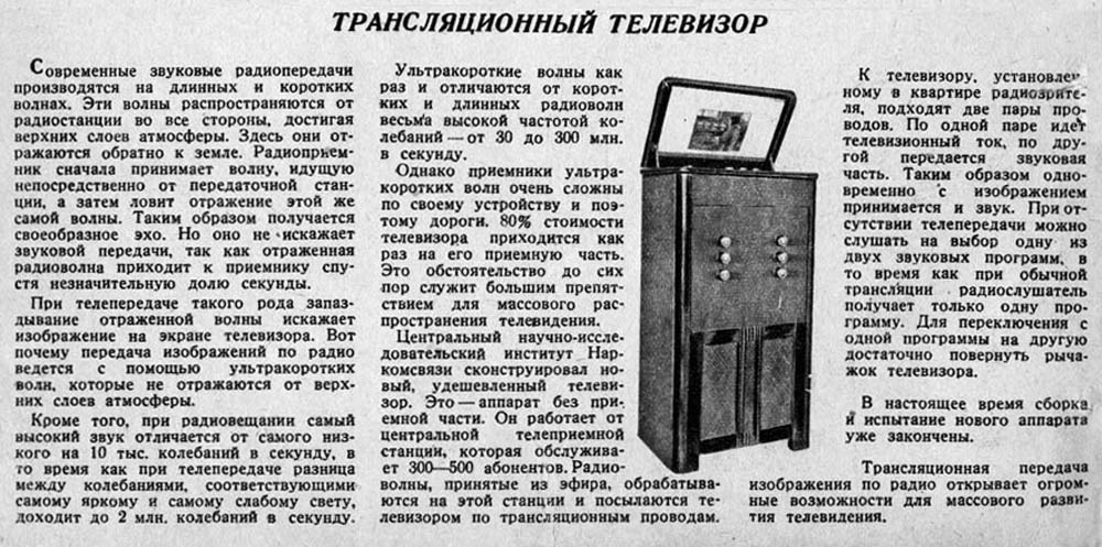 1941 года, перед началом войны проект проводного телевидения свернули.
