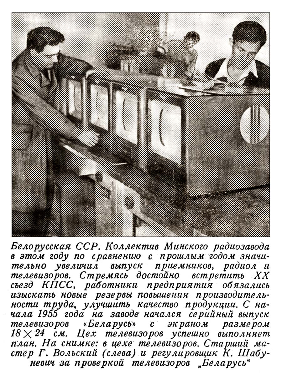 приёмник "Беларусь" с октября 1954 по май 1956 года выпускал Минский радиозавод.