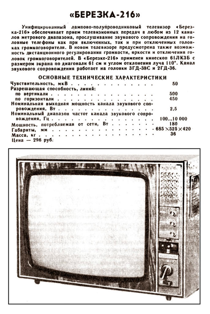 приёмник ч/б изображения "Берёзка-216" с 1982 года выпускало Харьковское