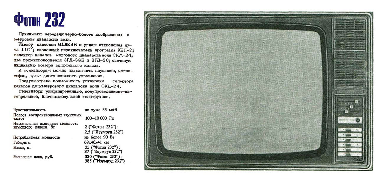 Телевизионный приёмник ч/б изображения "Фотон-232" с 1985 года опытно выпускал Симферопольский завод телевизоров имени 50-летия СССР.