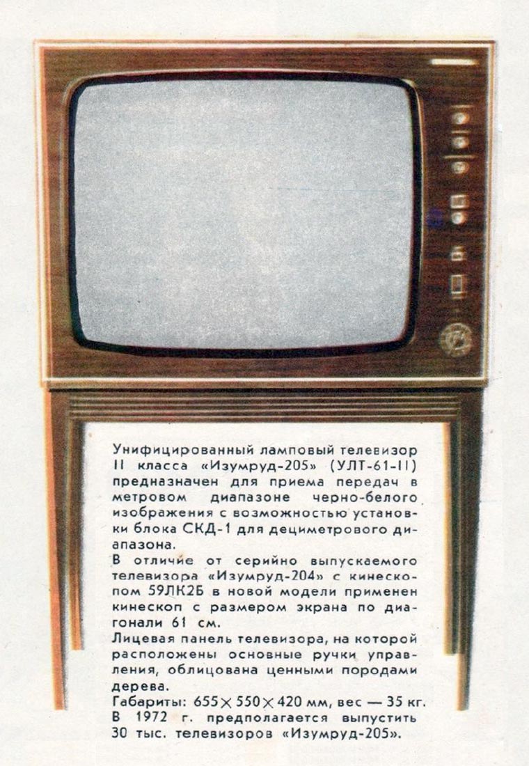 аналогичны унифицированным ч/б телевизорам 2 класса. Телевизор ''Изумруд-206''