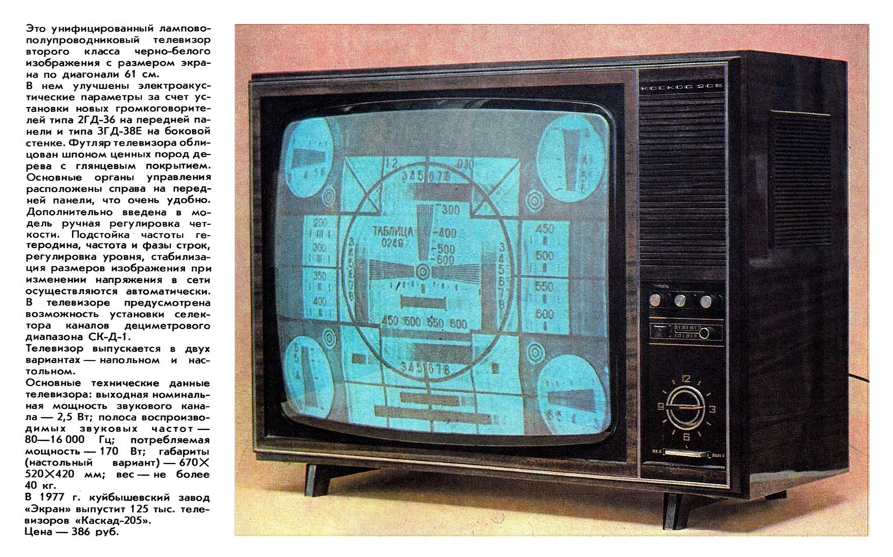 320 тыс. и наконец с 1977 года телевизор "Каскад-205", который производился