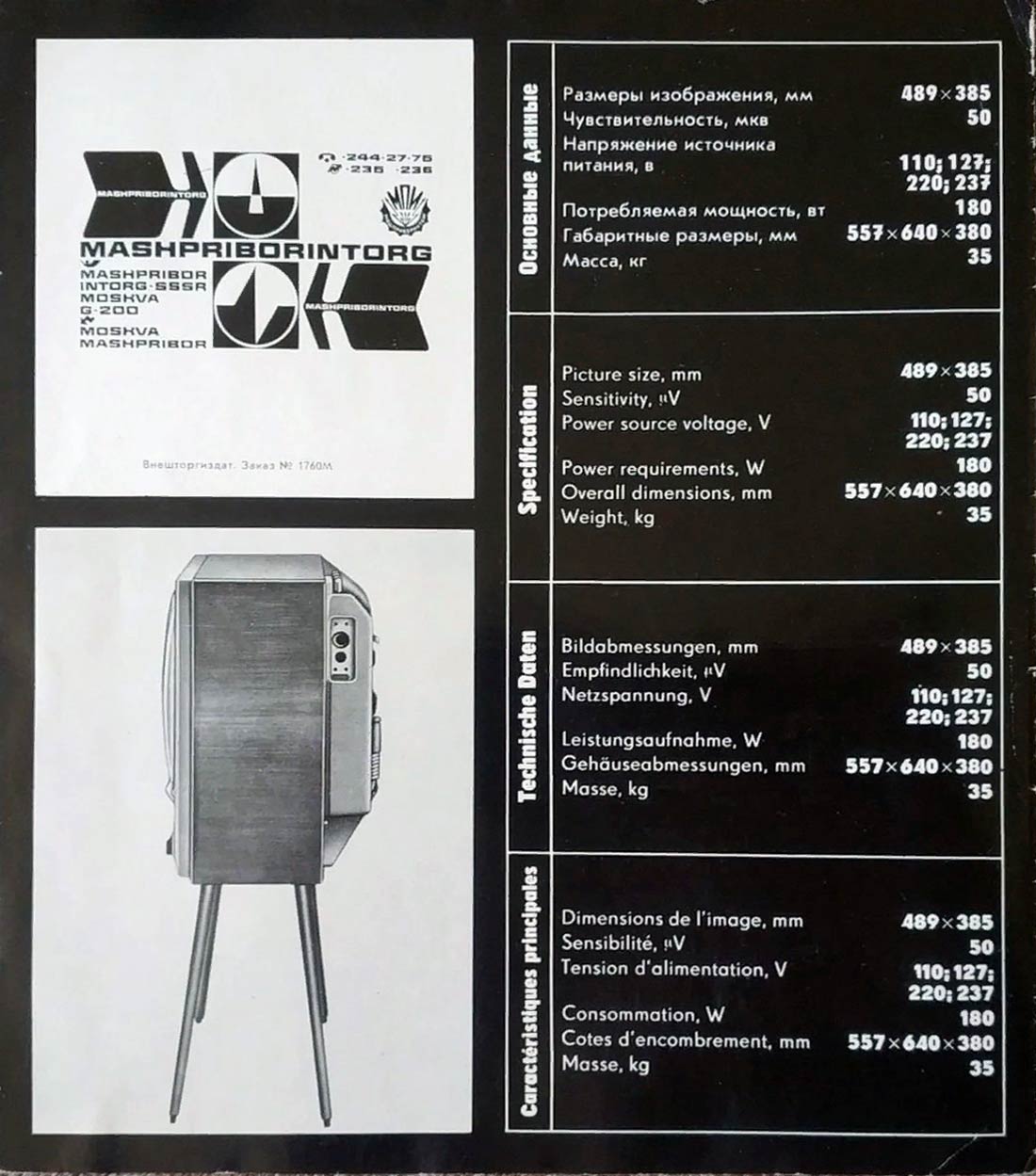 телевизор прост и удобен в обращении. Кинескоп применён 59ЛК2Б. Чувствительность