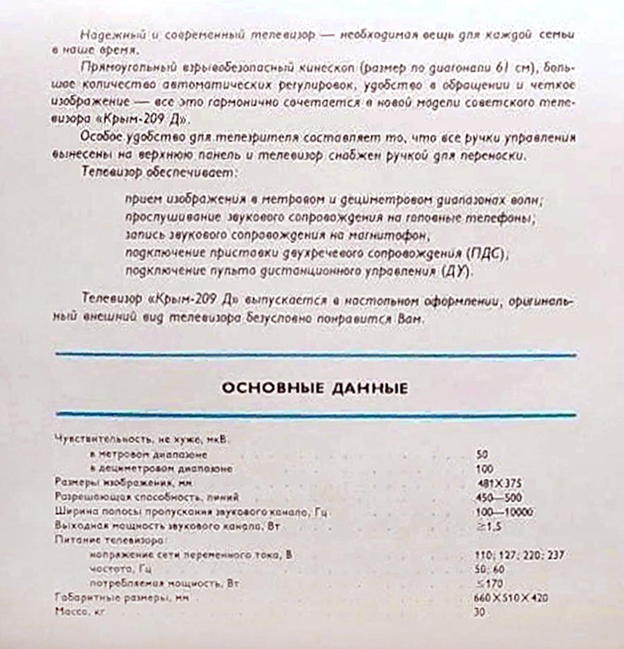 Телевизор ч/белого изображения "Крым-209Д" подготовил к производству с 1971 года Симферопольский завод телевизоров имени 50-ти летия СССР.
