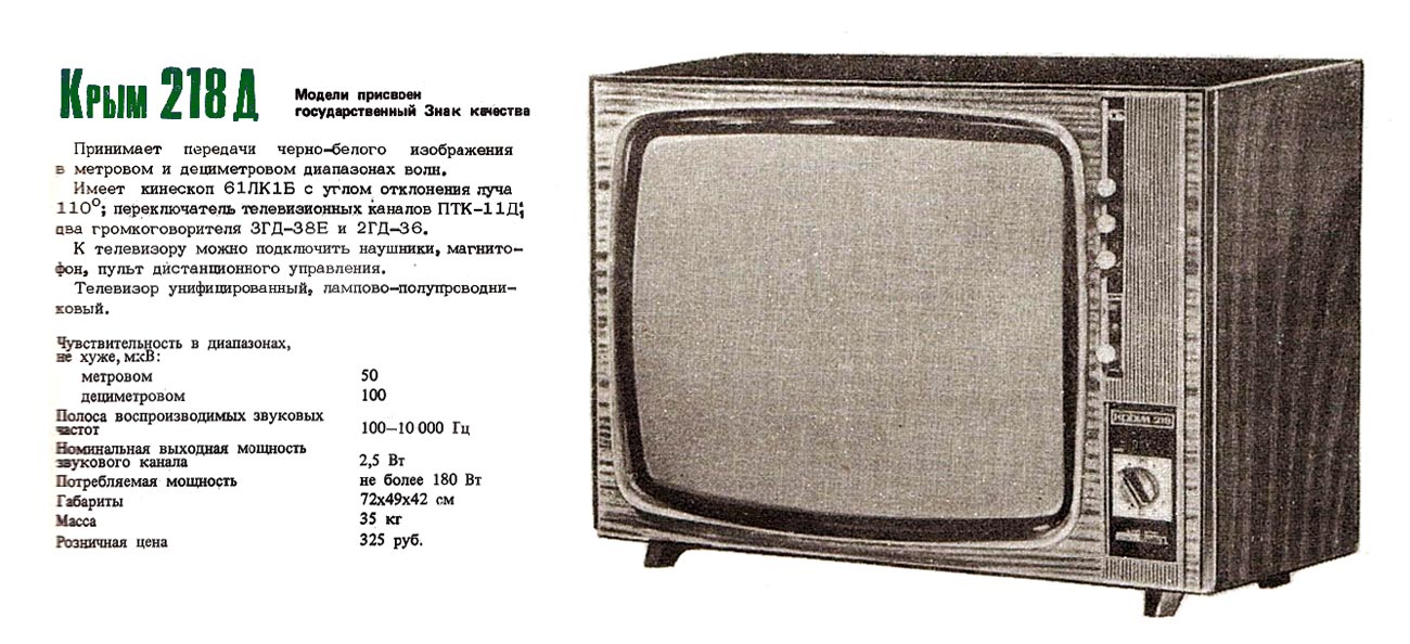 приёмник чёрно-белого изображения "Крым-218" с 1976 года выпускал Симферопольский