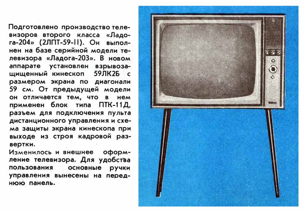 оформление и отличаются только кинескопами, в модели "Ладога-204" это 59ЛК2Б,