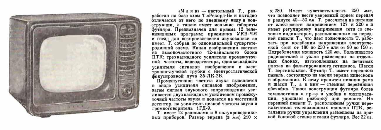 изображения "Маяк" с 1959 года выпускал Александровский радиозавод. Телевизор