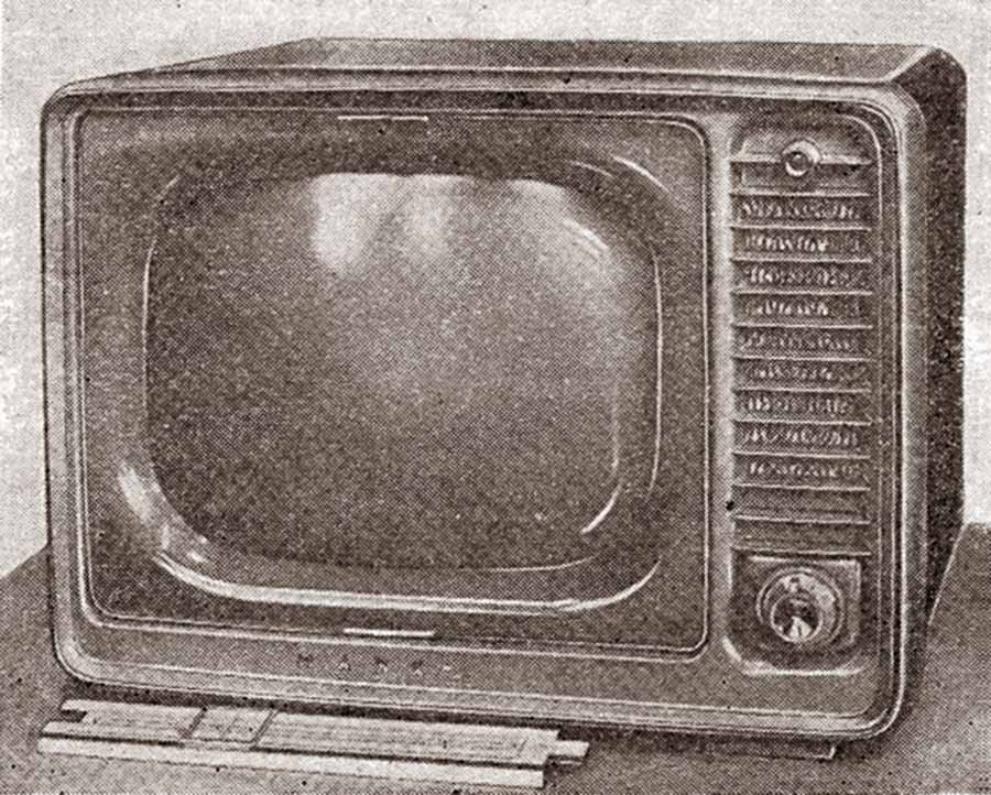 телевизора 485х365х495 мм. Вес 22 кг. Цена 129 рублей (1961 год).