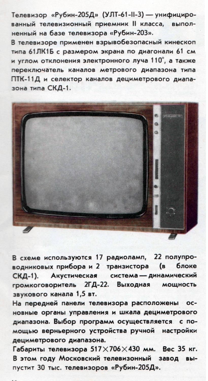 приёмник чёрно-белого изображения "Рубин-205/Д" с 1971 года выпускал Московский
