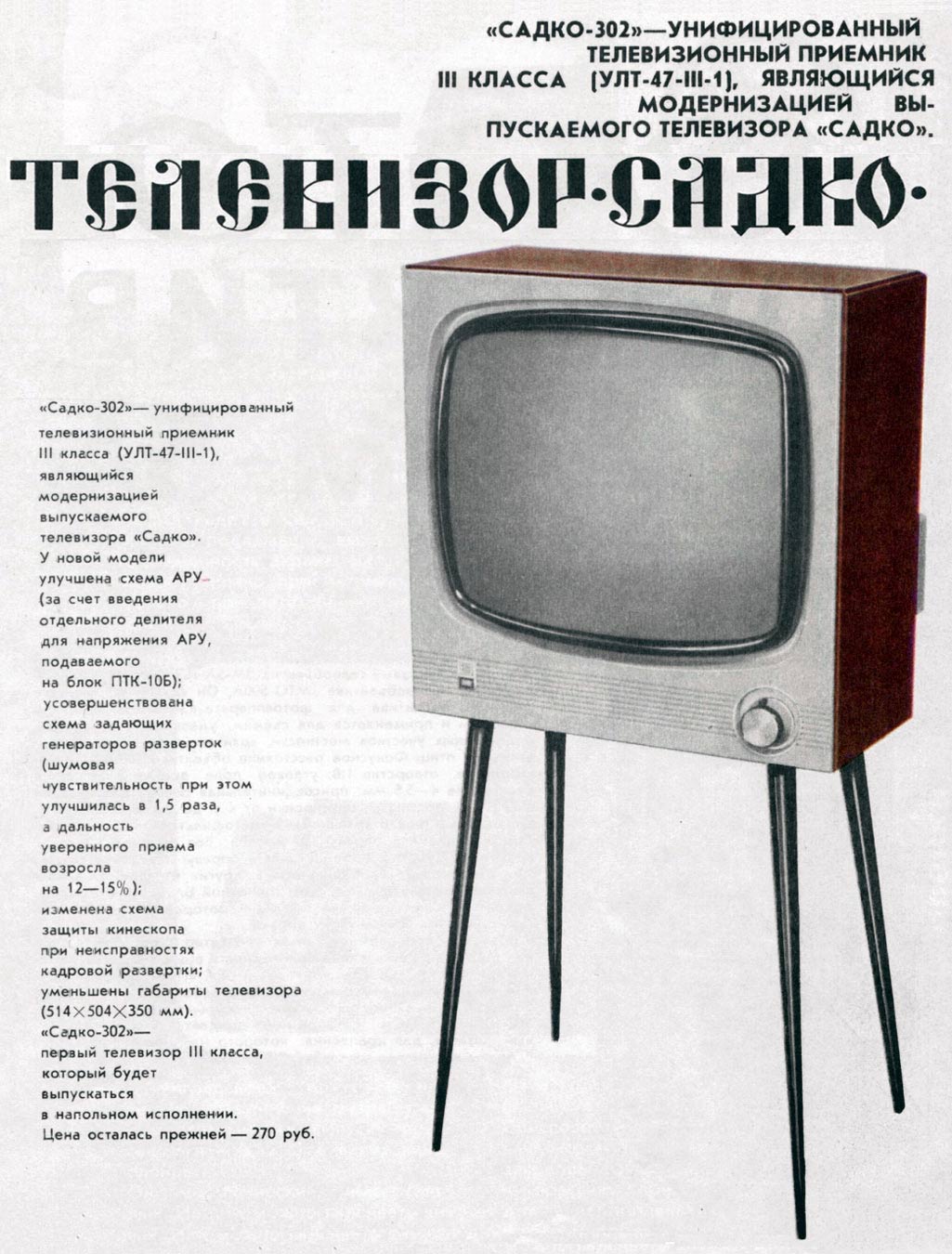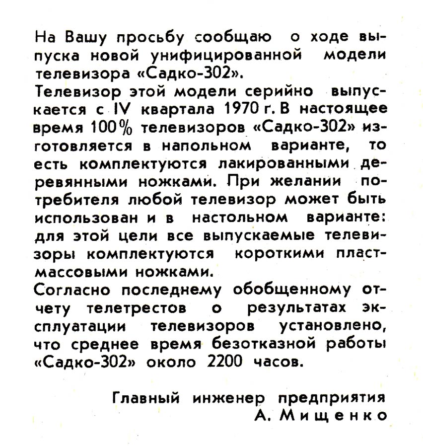 телевизор "Садко". Телевизор имел некоторые технические недостатки, которые