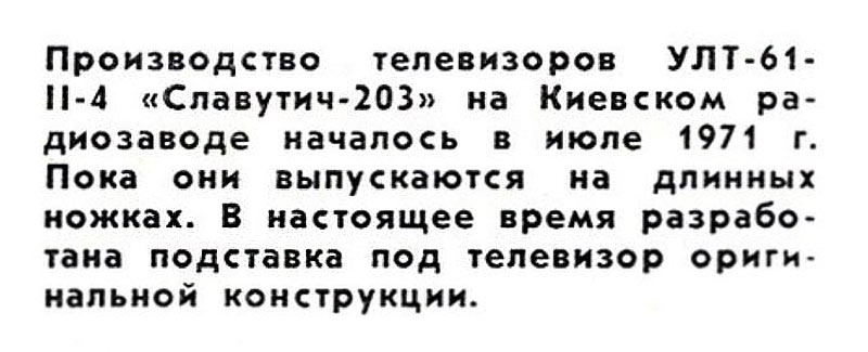 с 1971 и 1972 года выпускал Киевский радиозавод. Унифицированные телевизоры