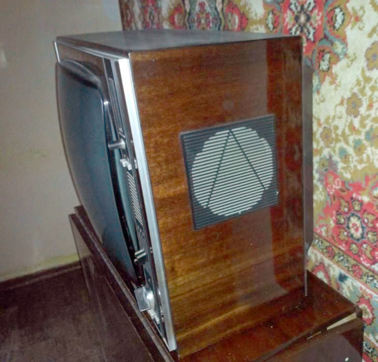 выпускали в настольном и напольном вариантах. Футляр телевизора деревянный,