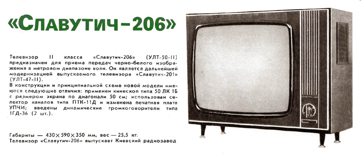 телевизор ч/б изображения "Славутич-206" (УЛТ-50-II-2) выпускался предположительно